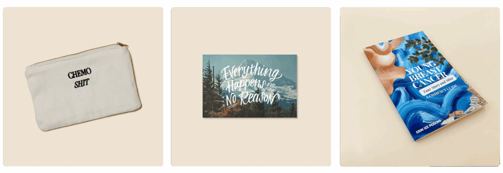 Try grounding practices like journaling, breath-work and (as you’ll hear us say a lot) talking to a therapist that specializes in working with breast cancer patients. Even a few quiet minutes to center yourself can be powerful.